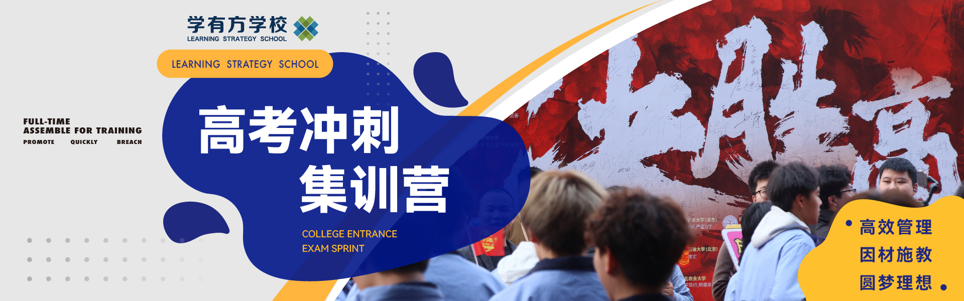 学有方学校,始创于2013年,是最早在福州开设中高考全日制辅导模式的培训学校。是最早在福州开设高考全日制集训的培训学校。由原新东方、原朴新学有方等上市公司具有10年以上办学经验的集团高管团队、省资深教育专家及业内一线名师联合创办,旨在整合国内及福建省优质教育资源,引进业内优质师资,面向全省开展高考全日制集训,高考复读、艺考生文化辅导等,为福建学子提供优质的教学产品和高考升学解决方案。